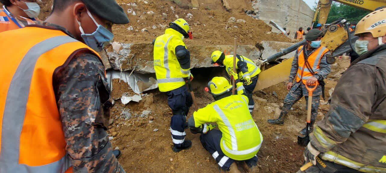 La Patrulla Especial de Rescate de ese cuerpo de socorro junto con rescatistas de otras instituciones recuperaron en total a las siete personas que fallecieron por el alud que se registró en el barrio Agua Caliente, Camotán, Chiquimula.
