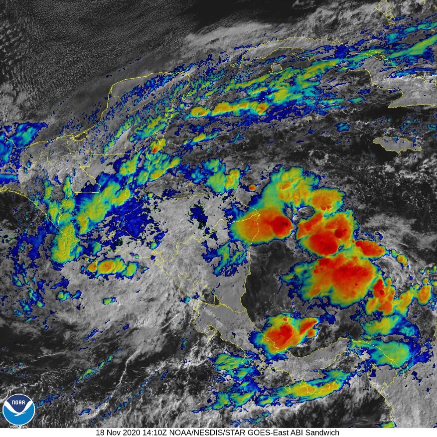 Iota, que afectaba al país como depresión tropical se degradó esta mañana, según el Instituto Nacional de Sismología, Vulcanología, Meteorología e Hidrología (Insivumeh).