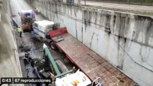 Amilcar Montejo, vocero vial de la Municipalidad de Guatemala, informó que un tráiler estuvo a punto de caer en el paso a desnivel que conduce a CentraNorte, en la zona 18.