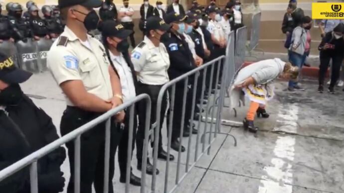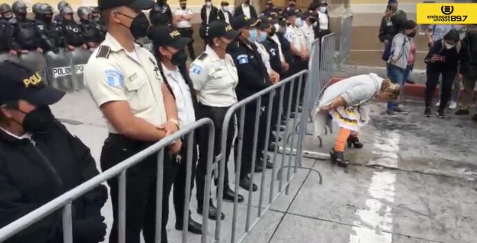 Luego de arremeter en contra de los diputados, quienes en la sesión del martes pasado aprobaron el Presupuesto General de la Nación 2021 en una jornada maratónica, la mujer orinó frente a los agentes de seguridad.