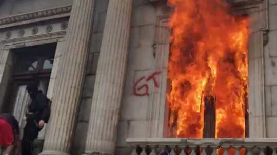 El bloque de manifestantes llegó al Congreso, varios participantes alzaron la voz y luego iniciaron un incendio desde una de las ventanas del palacio legislativo.