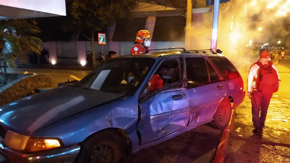 Una patrulla de la Policía Nacional Civil (PNC) ocasionó un accidente de tránsito la noche del sábado 21 de noviembre, en la zona 1 capitalina.