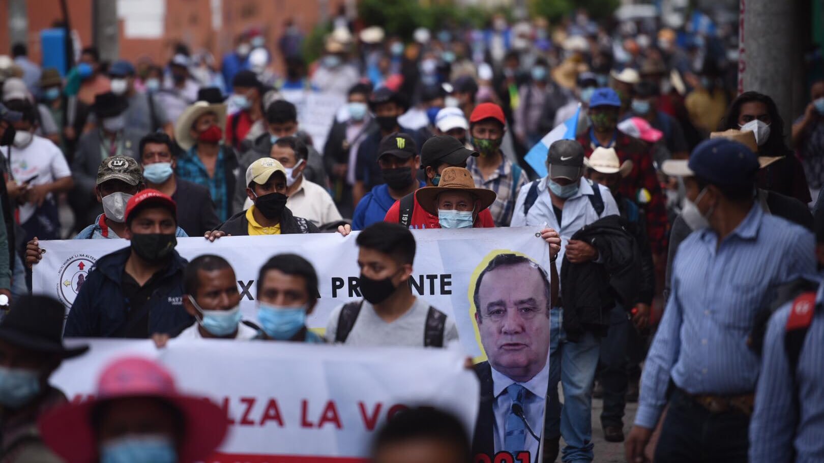 Las autoridades de los 48 Cantones de Totonicapán, la Alcaldía Indígena de Sololá y el Parlamento Xinka realizan una manifestación en el Centro Histórico.