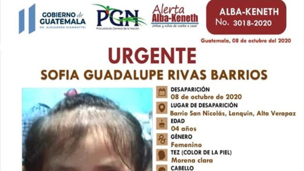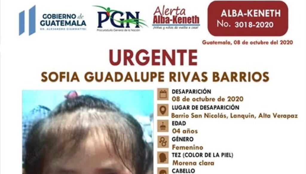 - Fue vista por última vez en el barrio San Nicolás, de Lanquín, en Alta Verapaz.