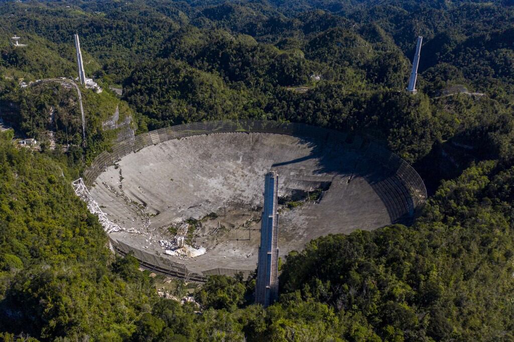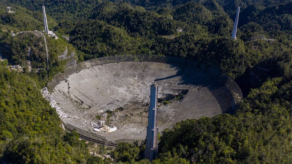 Dos cables que sostenían las 900 toneladas de los instrumentos del telescopio por encima de la antena esférica de 305 metros de diámetro se rompieron el 10 de agosto y el 6 de noviembre, respectivamente, lo que llevó a la Fundación Nacional de Ciencias de Estados Unidos a anunciar su desmantelamiento.