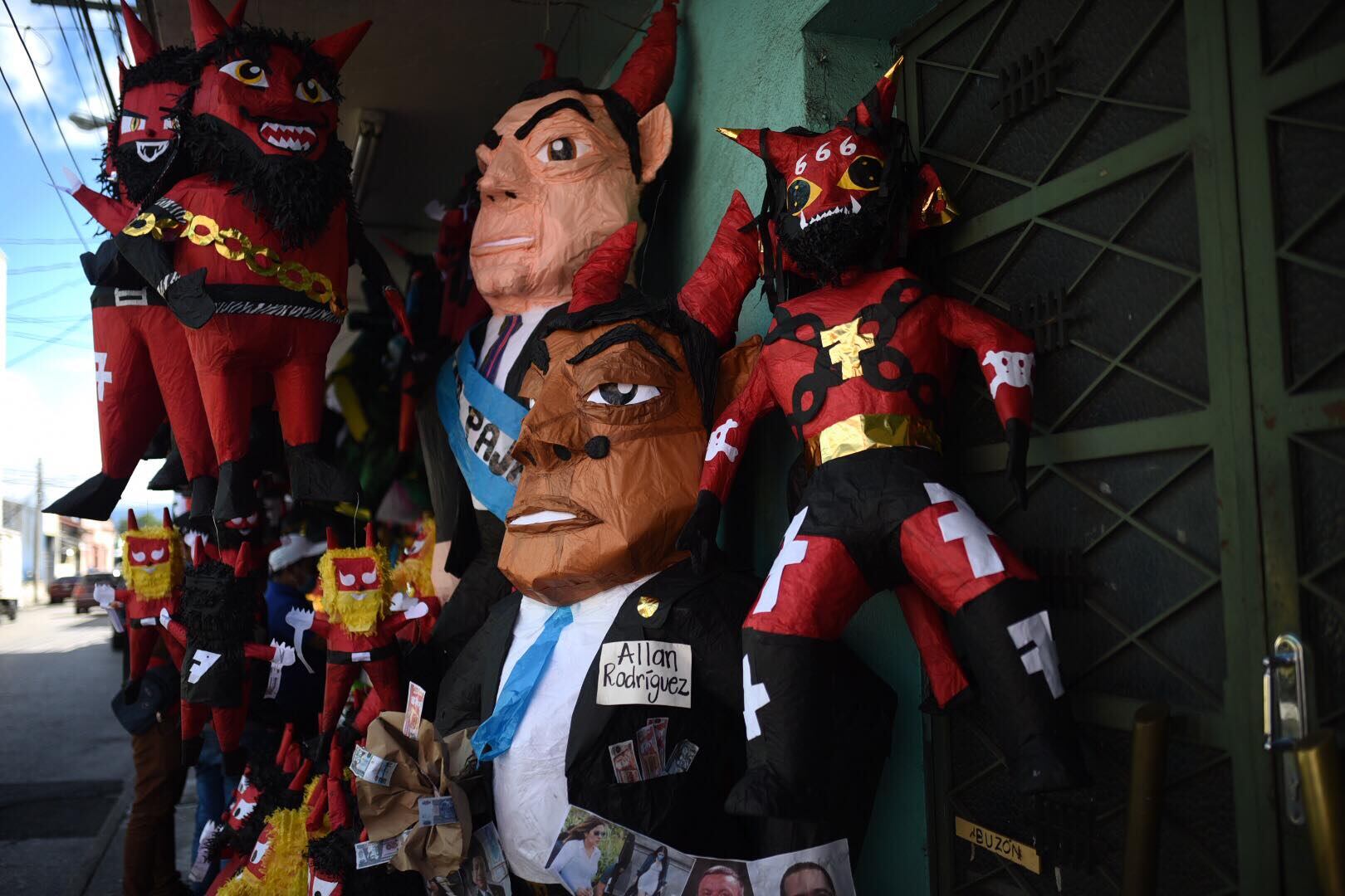 Los monigotes con que representan al presidente Alejandro Giammattei; Allan Rodríguez, presidente del Congreso; y del diputado Felipe Alejos, entre otros, son encargados por clientes, aseguran los emprendedores.