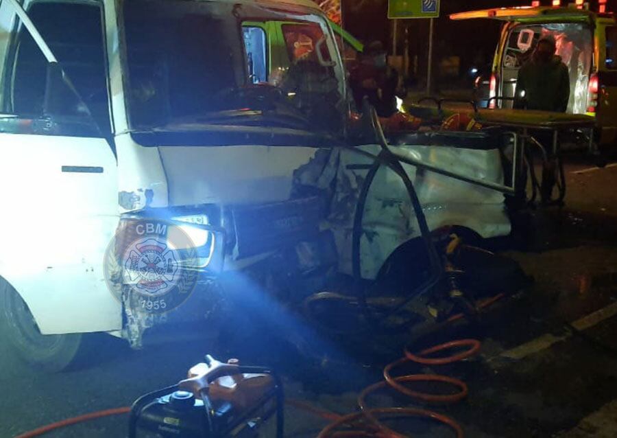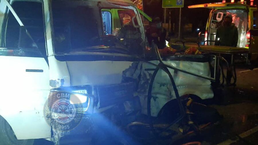 El otro de los vehículos, del cual brindaron información los socorristas, es uno tipo panel, el cual quedó destrozado en la parte frontal, específicamente en el lado del conductor.