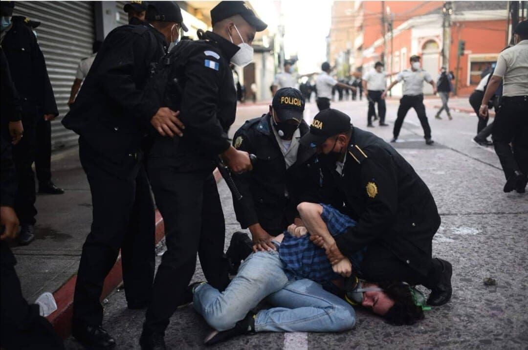 Vélez explicó que fue aprehendido por más de 10 agentes de la PNC en la 7a avenida, entre 8a y 9a calle de la zona 1.