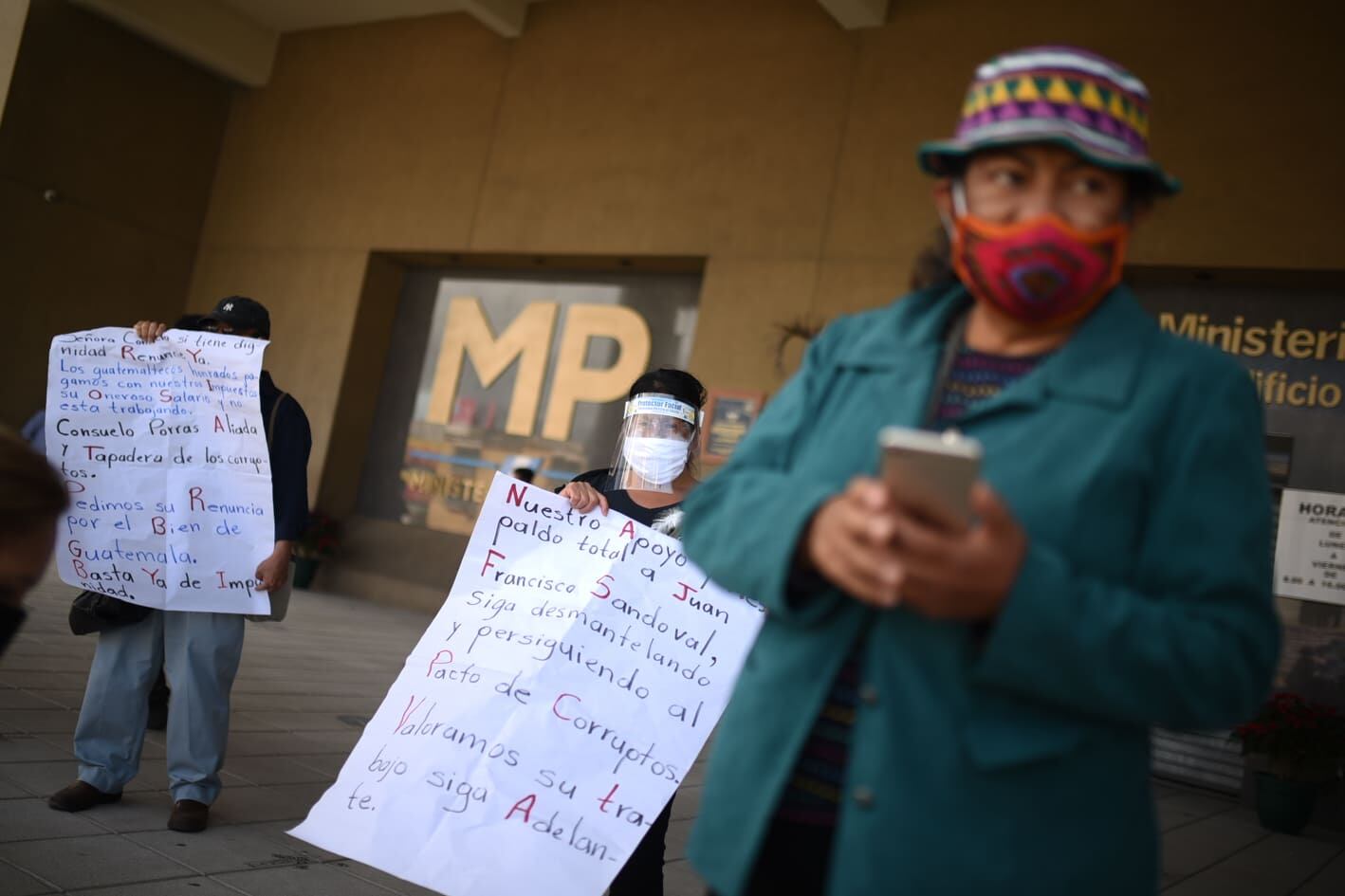 Por aparte, los manifestantes en el MP mostraron su apoyo al titular de la Fiscalía Especial contra la Impunidad, Juan Francisco Sandoval.