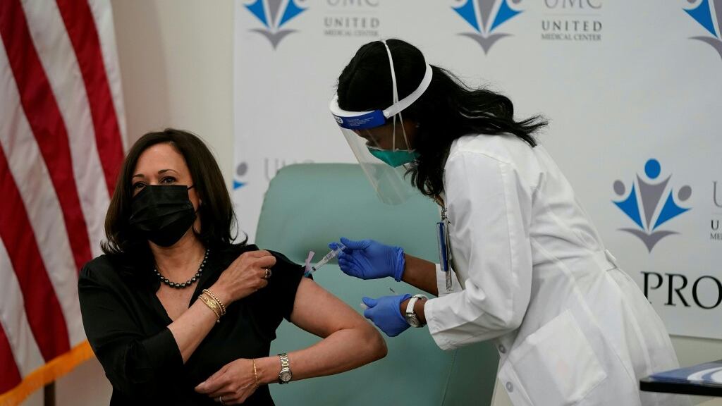 En el United Medical Center, una clínica ubicada en un área de importante población afroestadounidense, en Washington, Harris recibió la primera de las dos dosis de la vacuna fabricada por la firma estadounidense Moderna.