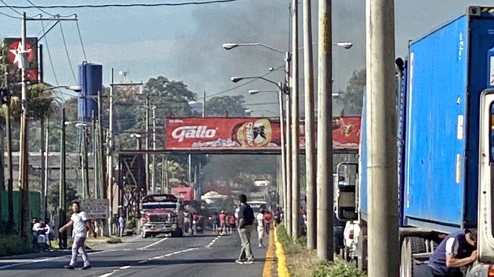 Un grupo de personas manifestó en el kilómetro 35 de la ruta al Pacífico. Como parte de la protesta cerraron los carriles en ambos sentidos y quemaron llantas.
