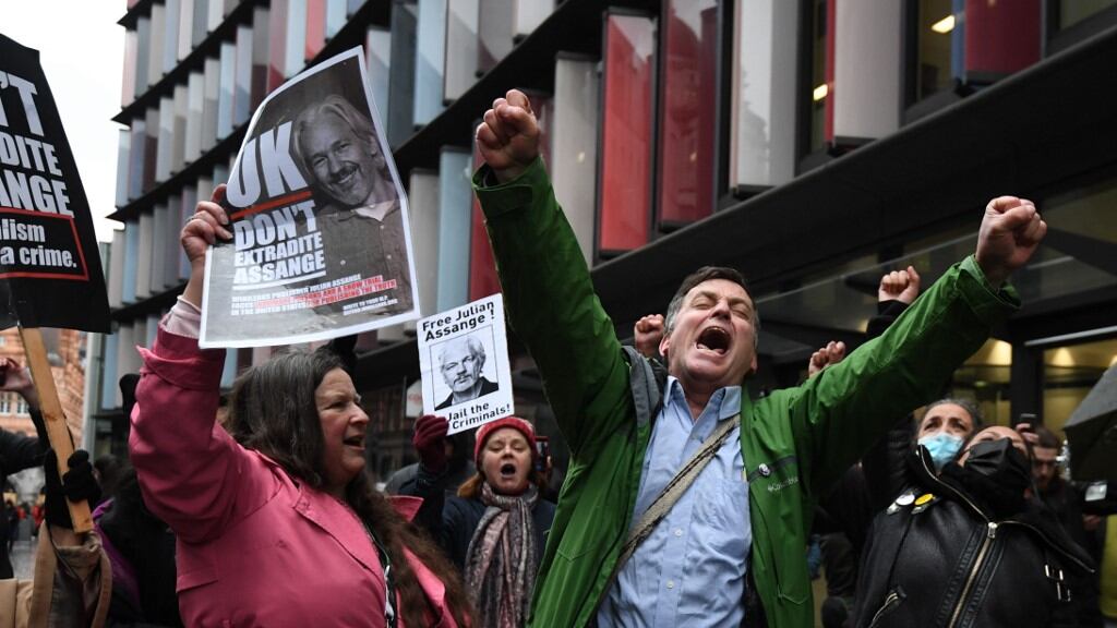 Un grito de júbilo estalló entre los manifestantes que se habían congregado a las puertas del tribunal para expresar su apoyo a Assange, de 49 años, en este caso que denuncian como clave para la libertad de prensa.