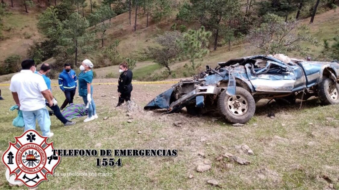 Los Bomberos Municipales Departamentales que un picop cayó a un barranco de aproximadamente cien metros en Quiché.
