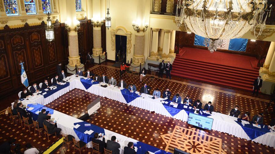 En el Salón de las Banderas del Palacio Nacional de la Cultura se llevó a cabo una reunión del presidente de la República, Alejandro Giammattei con los jefes y subjefes de bloque del Congreso.