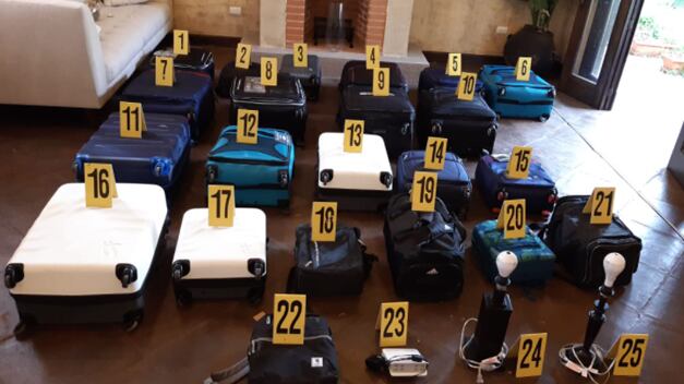 El dinero fue encontrado en 22 maletas de viaje, una de estas tenía una calcomanía con el nombre del exministro Benito.