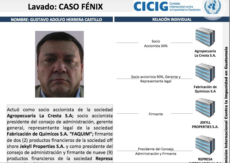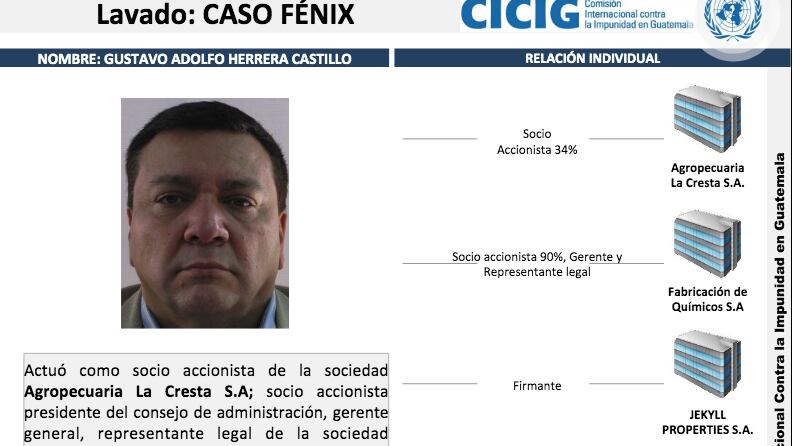 Entre los acusados más conocidos en dicho caso son Gustavo Adolfo Herrera Acevedo y Gustavo Adolfo Herrera Castillo. Dicho proceso inició por un caso de corrupción durante el gobierno del Frente Republicano Guatemalteco (FRG).