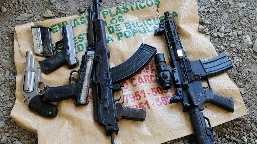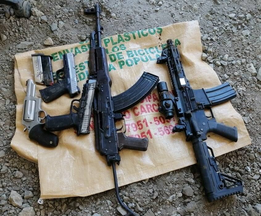 Además de las armas decomisadas también fueron capturadas varias personas.