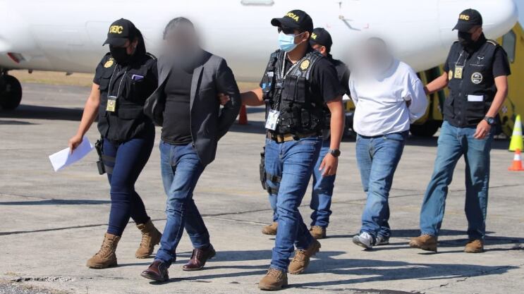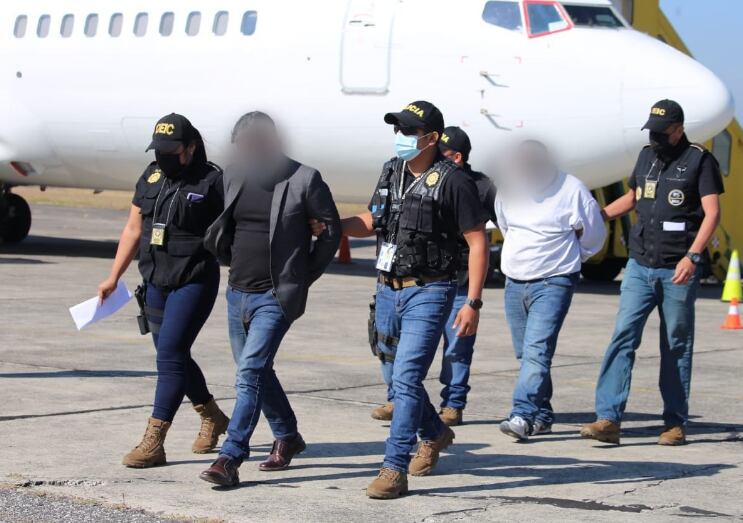 “El equipo de seguridad y alianza para la captura de fugitivos en coordinación con la sección de registro y ejecución de órdenes de captura se coordinó la captura de las tres personas que venían en un vuelo de deportados”, mencionó la PNC.