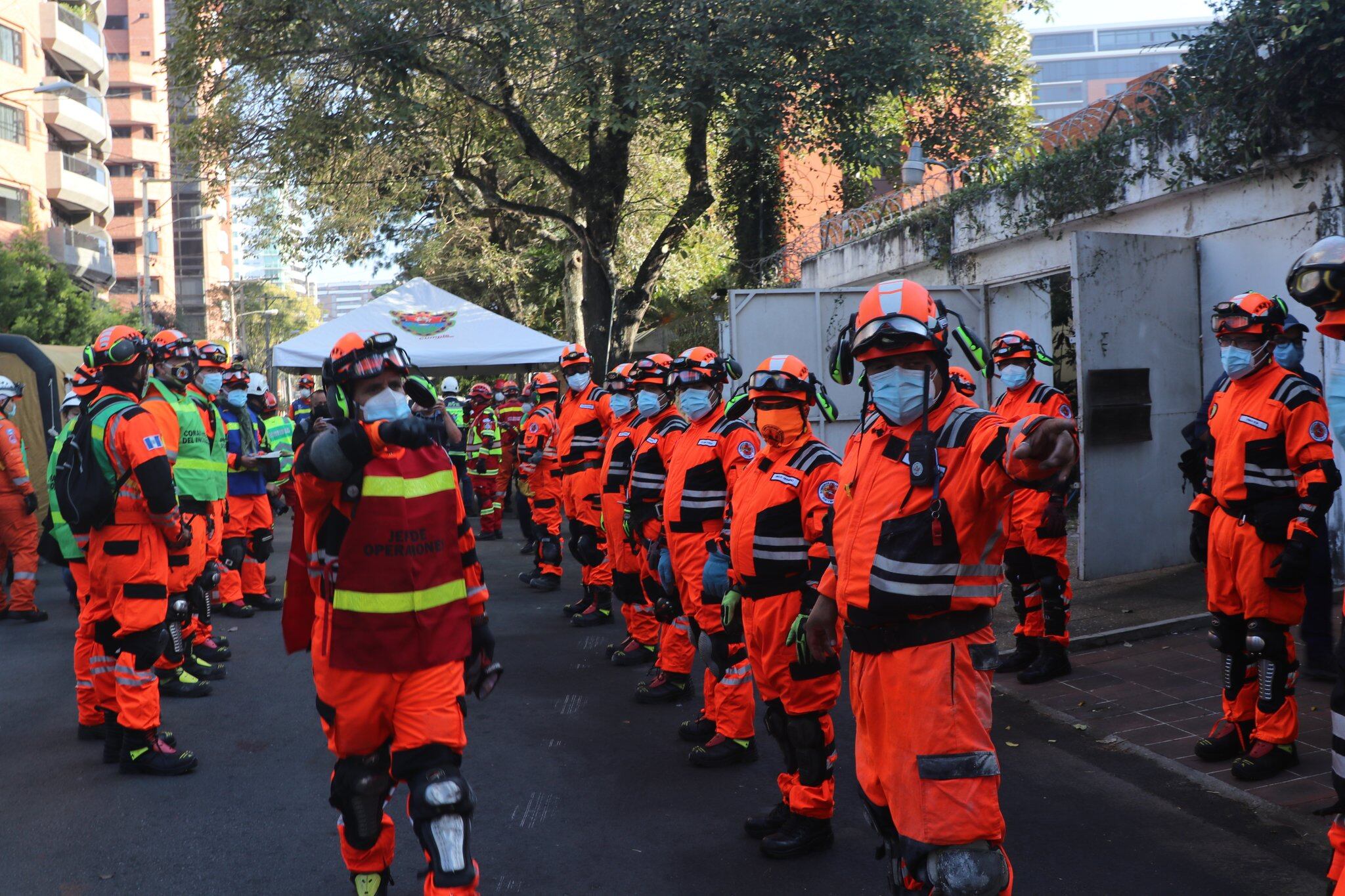 Al cumplir 45 años del terremoto de 1976, las instituciones de socorro llevan a cabo un simulacro de búsqueda y rescate.