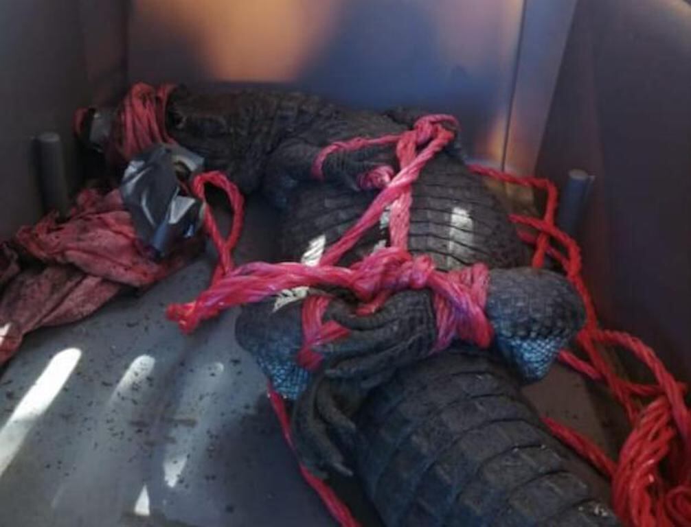 Los elementos de las fuerzas de seguridad neutralizaron al reptil con un lazo de plástico, con el cual le ataron las fauces y las patas.