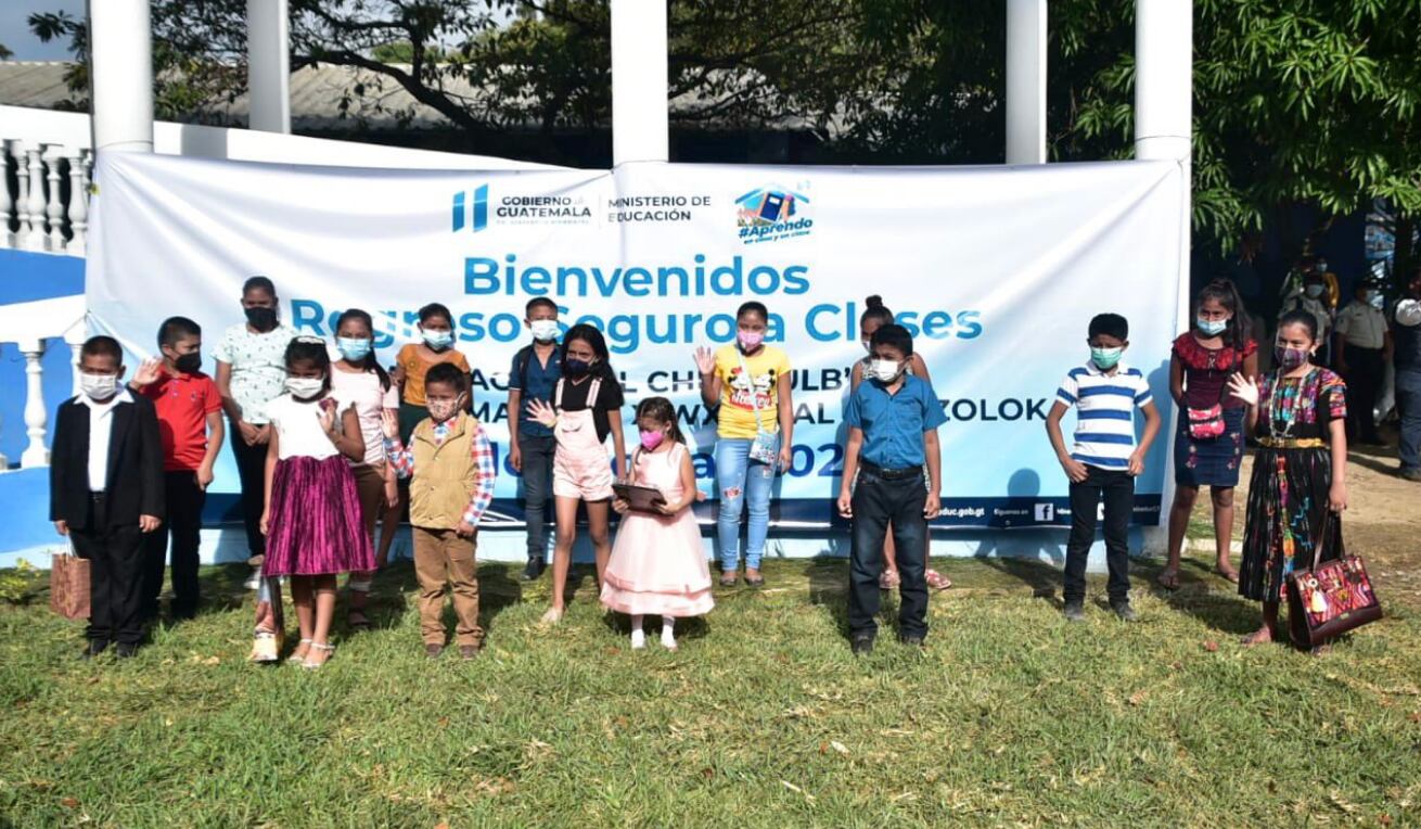 El presidente Alejandro Giammattei inauguró este lunes el ciclo escolar público con un sistema híbrido, presencial y virtual en Santa Catarina La Tinta, al norte de la capital.