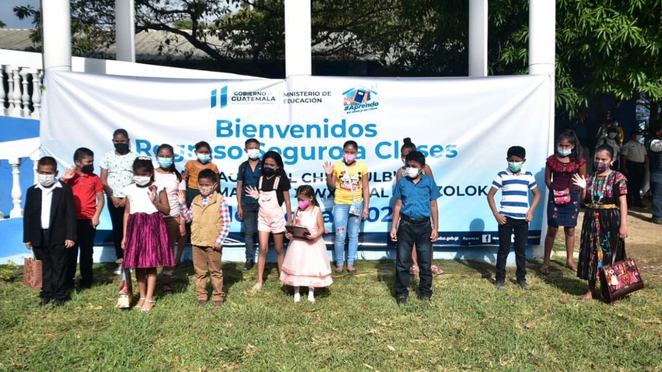 El presidente Alejandro Giammattei inauguró este lunes el ciclo escolar público con un sistema híbrido, presencial y virtual en Santa Catarina La Tinta, al norte de la capital.