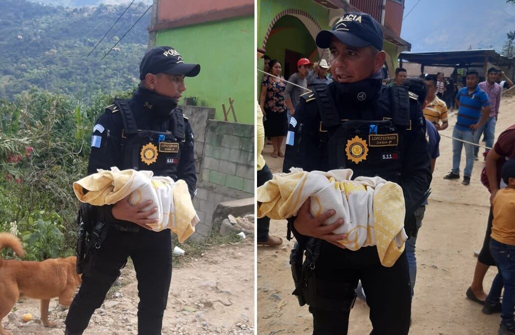 Agentes de la Policía Nacional Civil (PNC) resguardaron a bebé que fue abandonado en un basurero en una aldea en Huehuetenango.