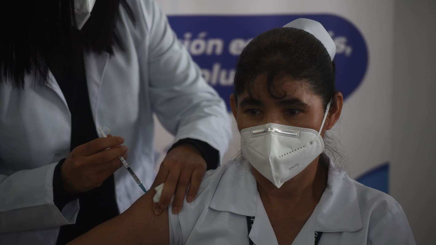 La primera guatemalteca vacunada en este hospital fue la enfermera Magdalena Guevara González, de 46 años, jefa de la sección de cuidados intensivos.