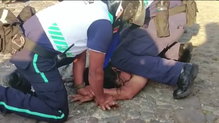 Las imágenes muestran a un hombre en el suelo que intentaba forcejear con los agentes, uno de ellos con la rodilla sobre la cabeza de la víctima.