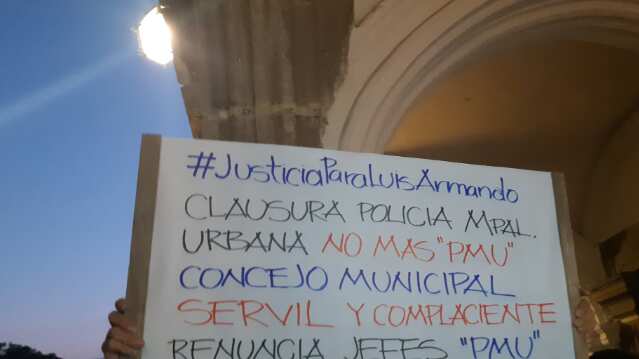 Luego del informe del Instituto Nacional de Ciencias Forenses (Inacif) sobre las causas de muerte de Luis Armando Solórzano Subuyuj donde están involucrados tres agentes de la Policía Municipal Urbana de La Antigua Guatemala un grupo de personas exigió respeto frente a la municipalidad de la ciudad colonial.
