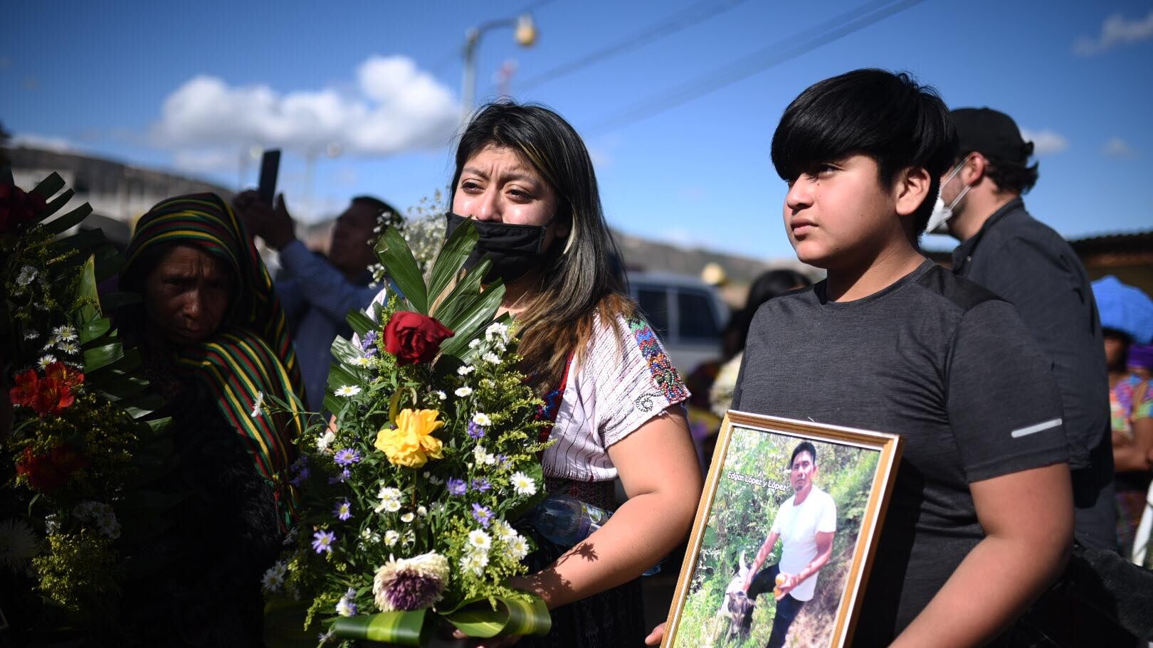 Los cuerpos llegaron horas antes a un aeropuerto militar en la capital, repatriados desde México. Sobre sus ataúdes se colocó la bandera azul y blanca de Guatemala.