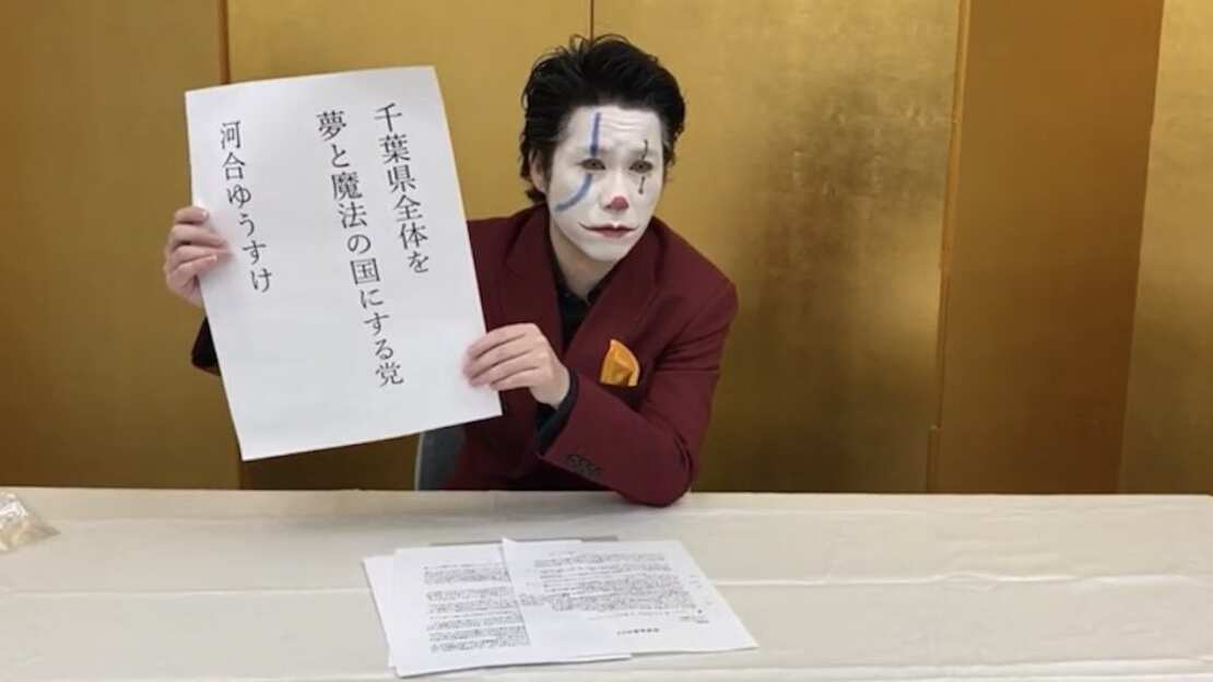 Uno de los candidatos a la elección de gobernador de la prefectura de Chiba, en Japón,, Yusuke Kawi, de 40 años, un youtuber y empresario, decidió lanzar su plataforma de campaña de una manera muy curiosa, vestido de Joker, el famosos villano de Batman.