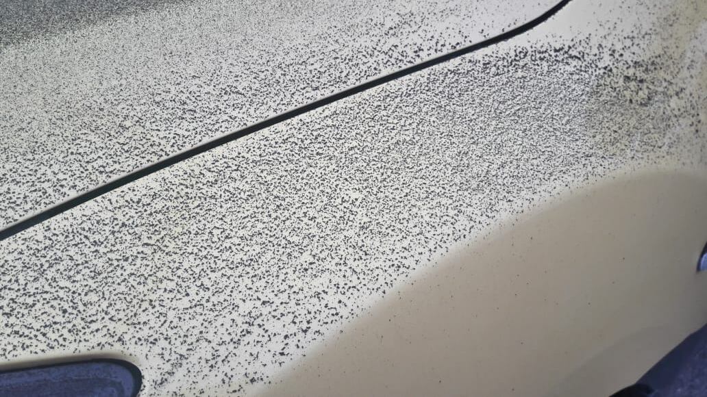 En redes sociales, usuarios compartieron fotografías de la capa de ceniza cubriendo calles y vehículos.
