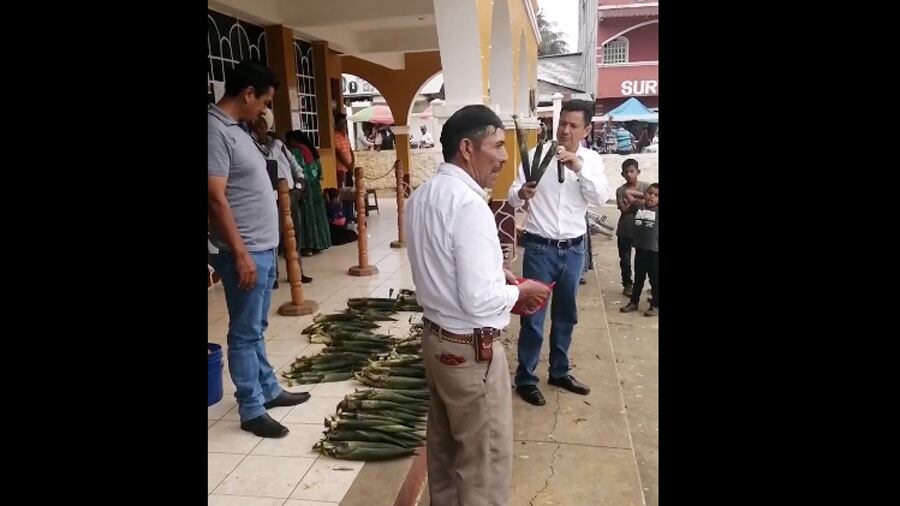 Frente al edificio de la Municipalidad de Chisec, en Alta Verapaz, se realizó una recaudación de víveres para las familias de las personas detenidas por extraer 96 pacayas en Cobán el fin de semana pasado.