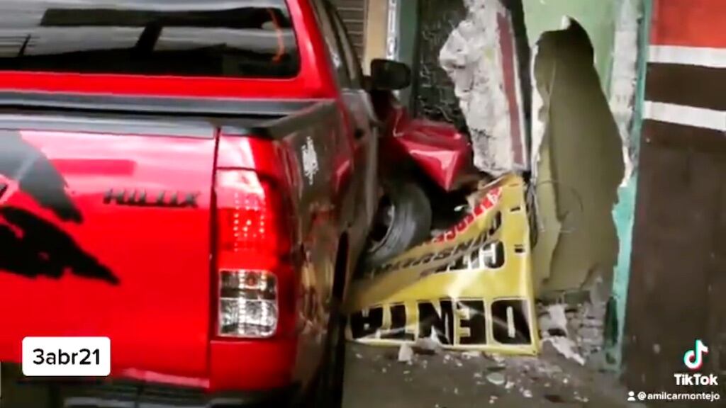 - Un vehículo tipo picop chocó en contra del muro frontal de una vivienda.