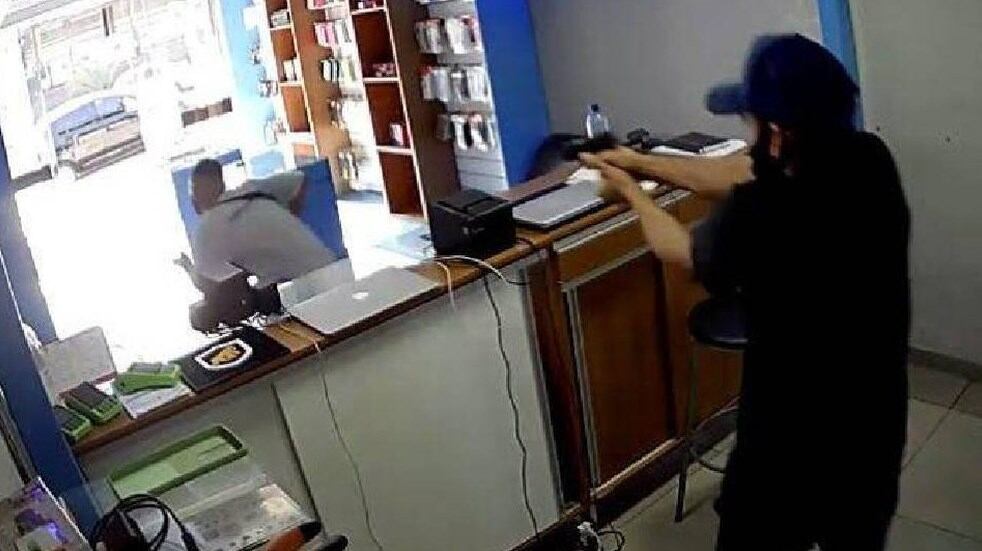 Una cámara de seguridad captó el impactante momento en el que un comerciante le disparó por la espalda a un ladrón, que momentos lo había asaltado, cuando este intentaba escapar.