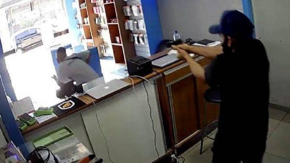 El sospechoso arribó a bordo de una motocicleta en compañía de un cómplice, ingresó al local y en seguida procedió a amenazar al hombre con un arma de fuego.
