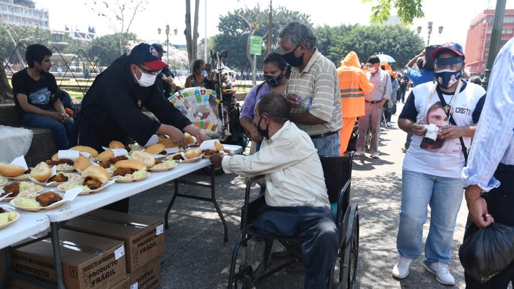 Además, especificó que todos los días, desde el inicio de la pandemia, se reparten los alimentos a las personas en la calle, “pero hoy es un poquito más por la festividad”, indicó.
