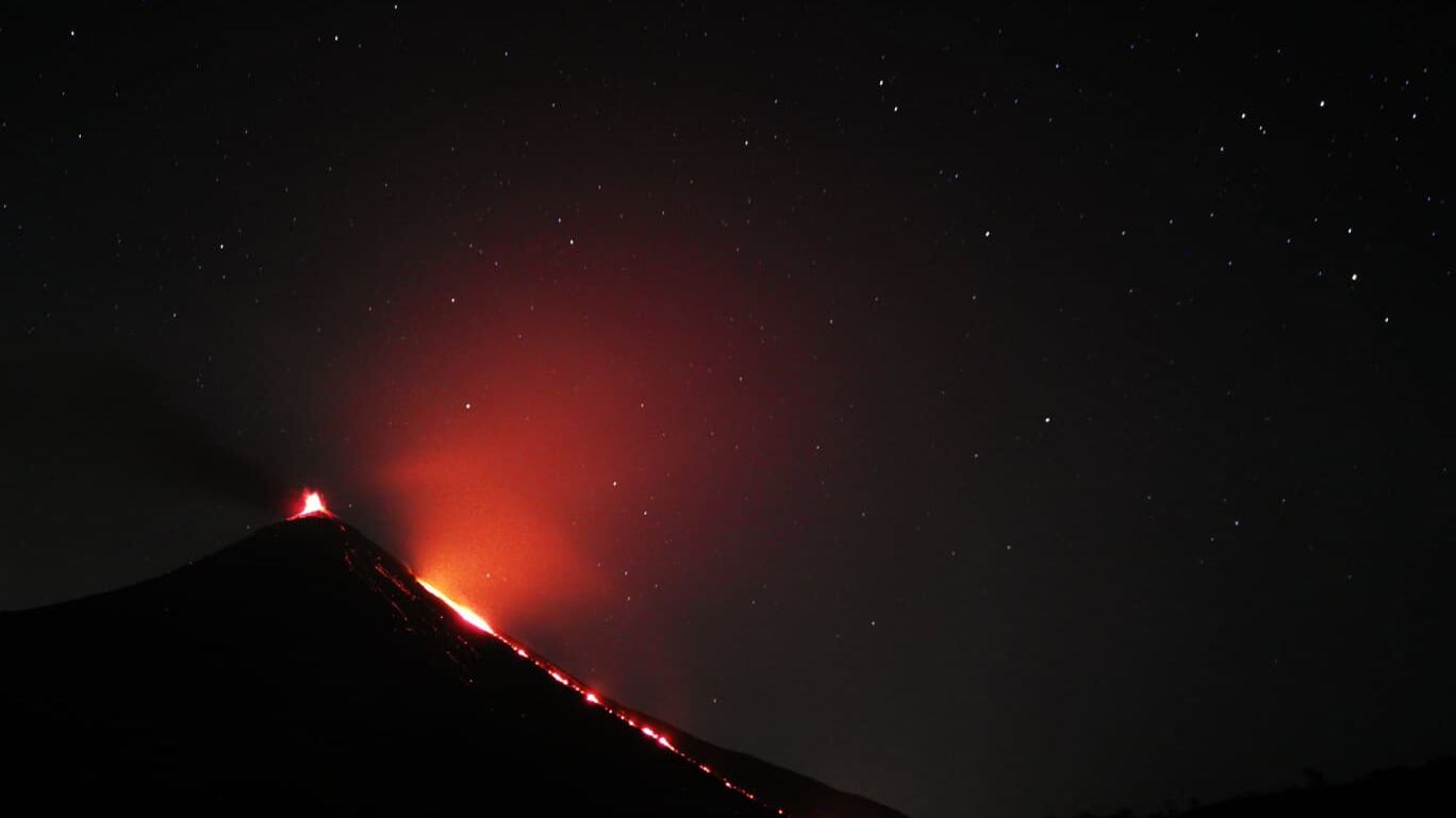 El volcán de Pacaya, ubicado al sur del departamento de Guatemala, mantiene flujos de lava y columnas de ceniza desde hace más de dos meses.