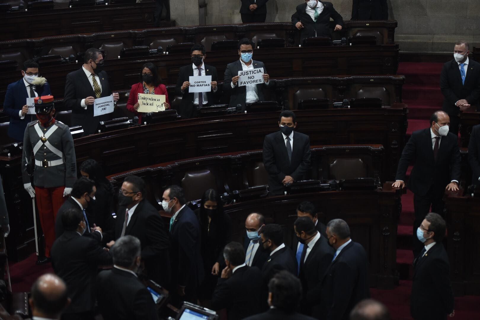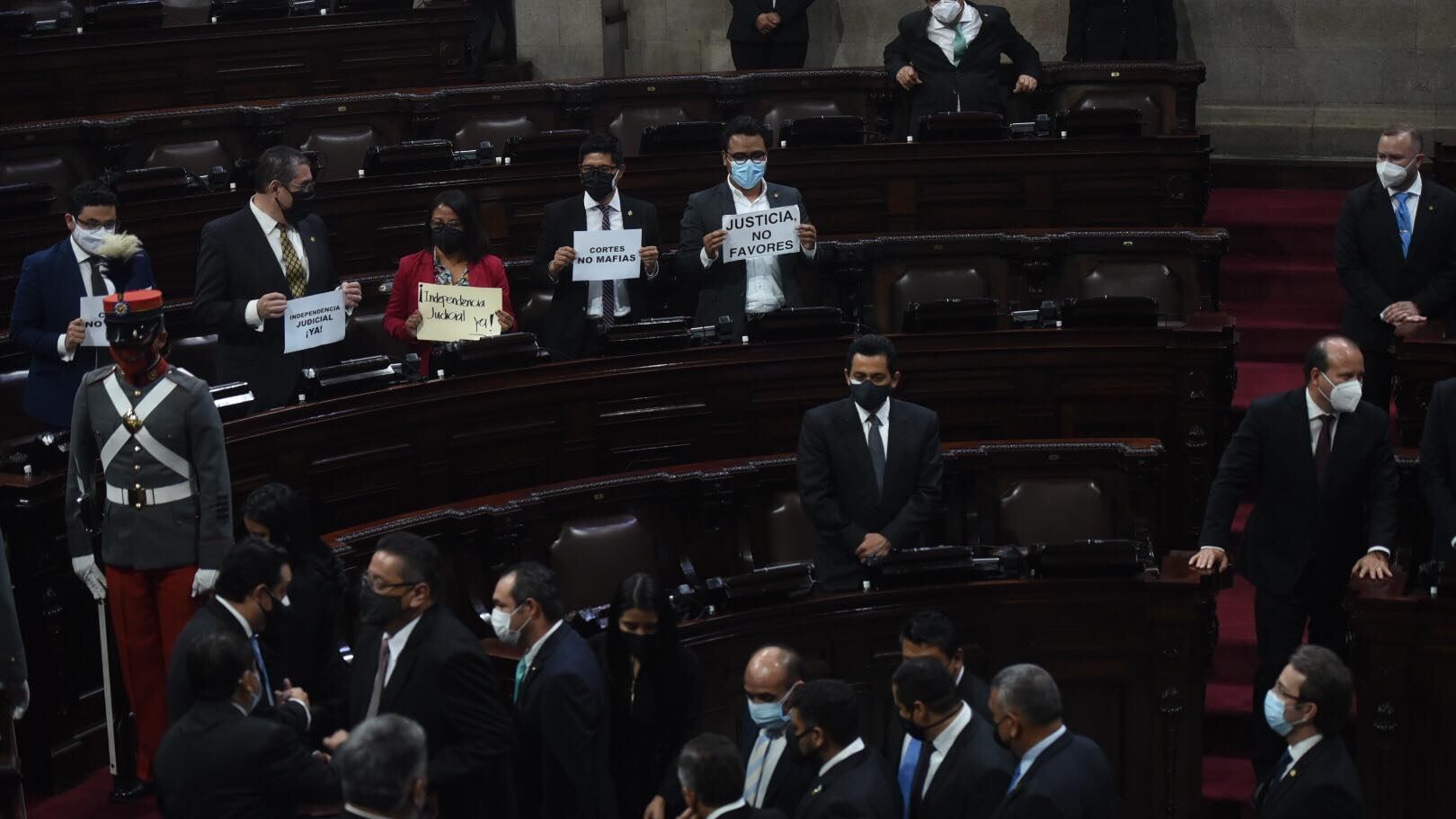 El presidente del Congreso, Allan Rodríguez, recordó que un artículo transitorio del Decreto 3-2021, impide juramentar a los magistrados que tienen acciones pendientes.