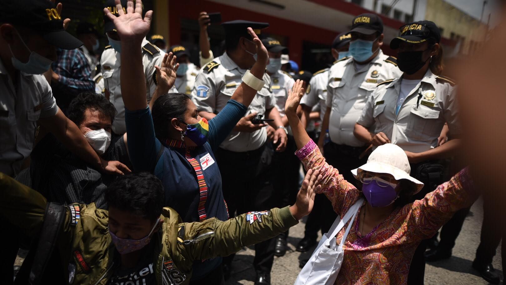 Previo al acto de juramentación de los magistrados de la Corte de Constitucionalidad varios grupos se concentraron en los alrededores del Congreso.