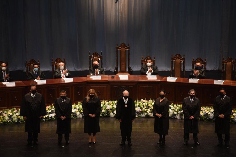 Específicamente, por los magistrados legítimamente electos que no fueron juramentados por el Congreso de República: Gloria Porras, debido a dos amparos contra el proceso de elección; Nester Vásquez y Claudia Paniagua, representantes del Colegio de Abogados y Notarios de Guatemala (CANG).
