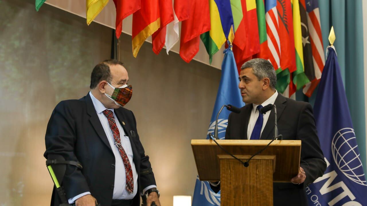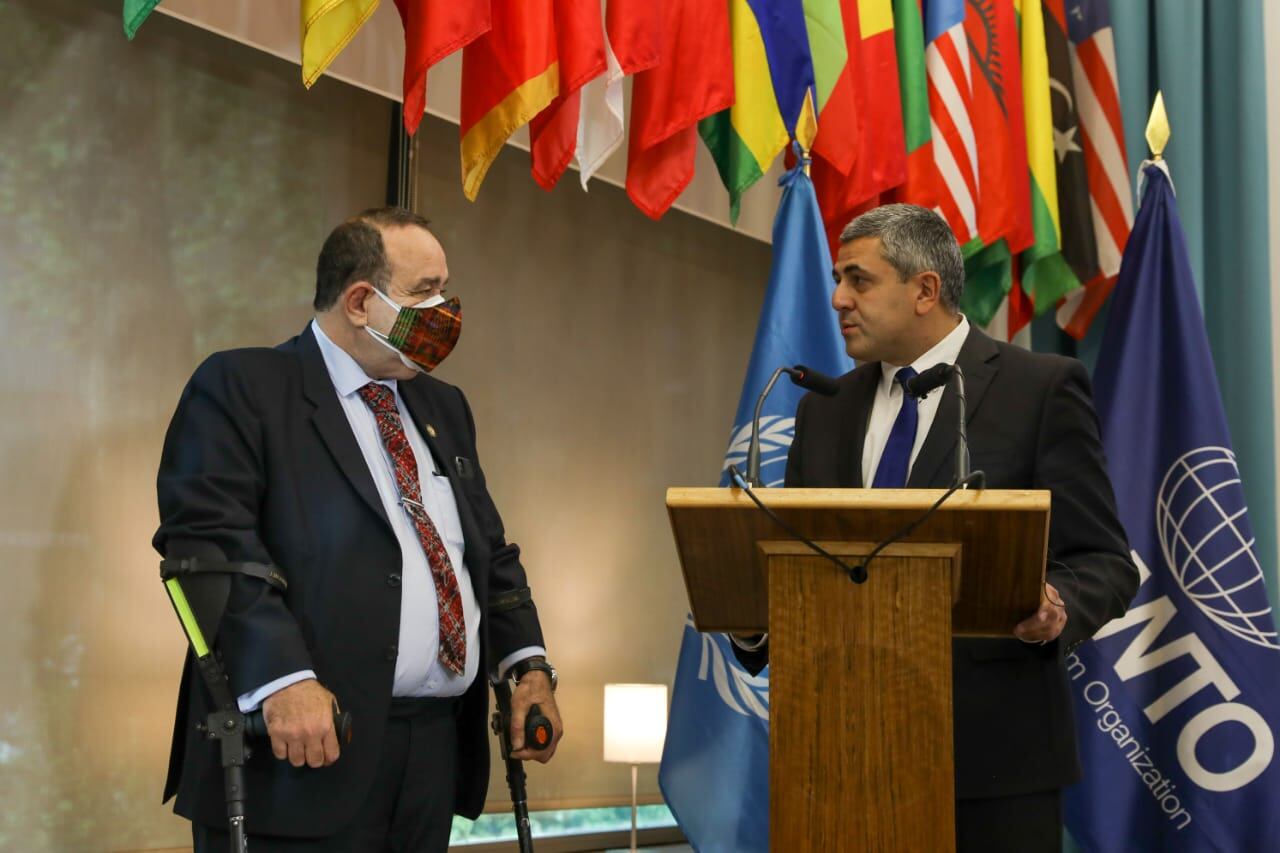 El presidente de la República, Alejandro Giammattei, se reunió este domingo, 18 de abril, con Zurab Pololikashvili, secretario general de la Organización Mundial de Turismo (OMT).
