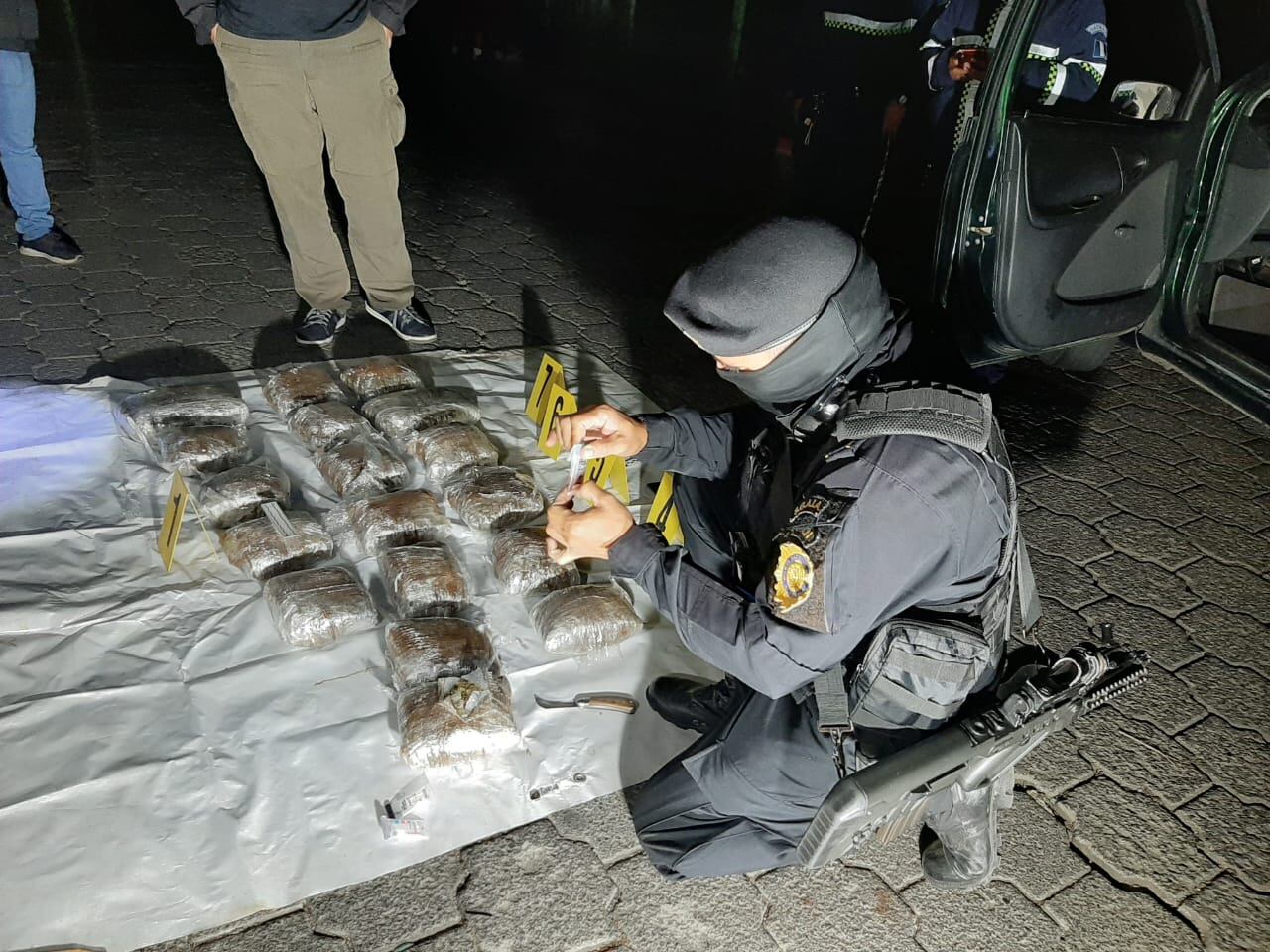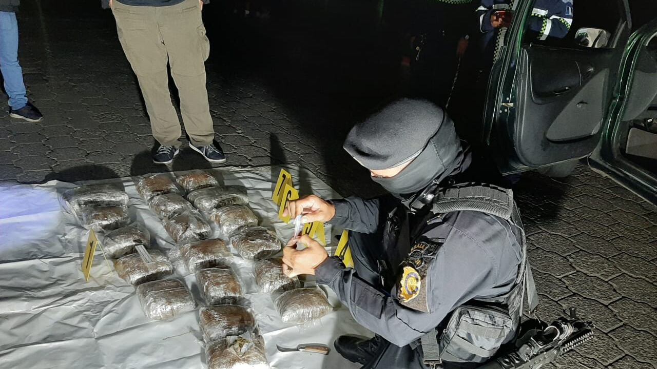 Dos hombres y una mujer fueron capturados por agentes de la Policía Nacional Civil (PNC) por supuestamente trasladar 20 kilos de marihuana en el interior de un vehículo.