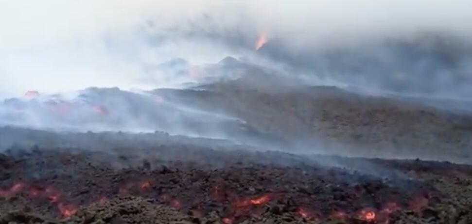 “Dicha fisura expulsa material incandescente y genera dos flujos de lava de 200 metros de largo”, detalló la Conred por medio de sus redes sociales.
