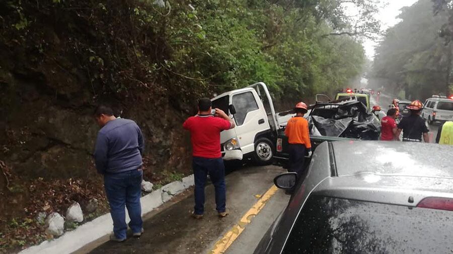 Bomberos de la Asociación de Salvamento y Extinción de Incendios (ASEI) de La Antigua Guatemala acudieron al kilómetro 38, bajada de Las Cañas, en donde ocurrió un accidente múltiple de vehículos.