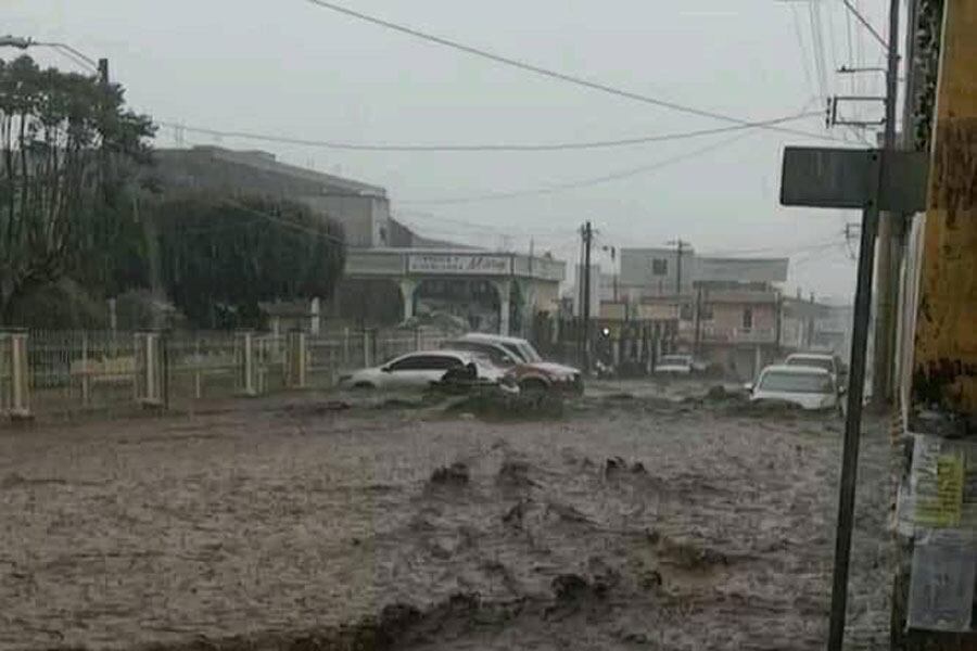 Las fuertes correntadas de agua cubrieron varios metros de los negocios instalados en la carretera principal del municipio, según indicó una persona que grabó con su teléfono desde la azotea de una vivienda.