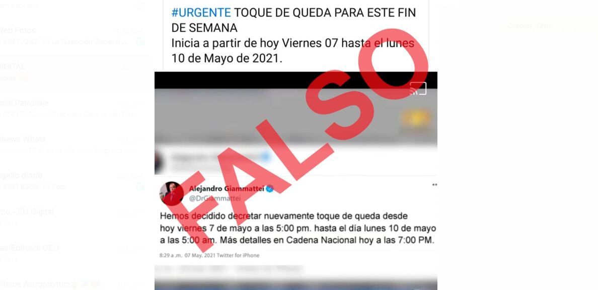 Con la imagen de un supuesto tuit del presidente Alejandro Giammattei y haciendo uso de los logos de medios locales se hizo viral por medio de aplicaciones de mensajería y redes sociales el falso mensaje.