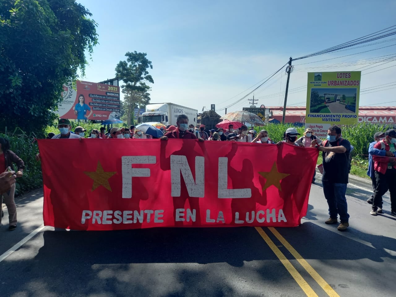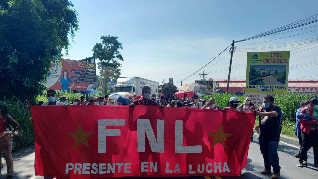 Miembros del Sindicato Nacional de Trabajadores de Salud de Guatemala (SNTSG) y del Frente Nacional de Lucha (FNL) bloquearon ambos sentidos de la carretera desde tempranas horas de este martes, en el kilómetro 163 de esa ruta, en el sector conocido como El Triángulo.