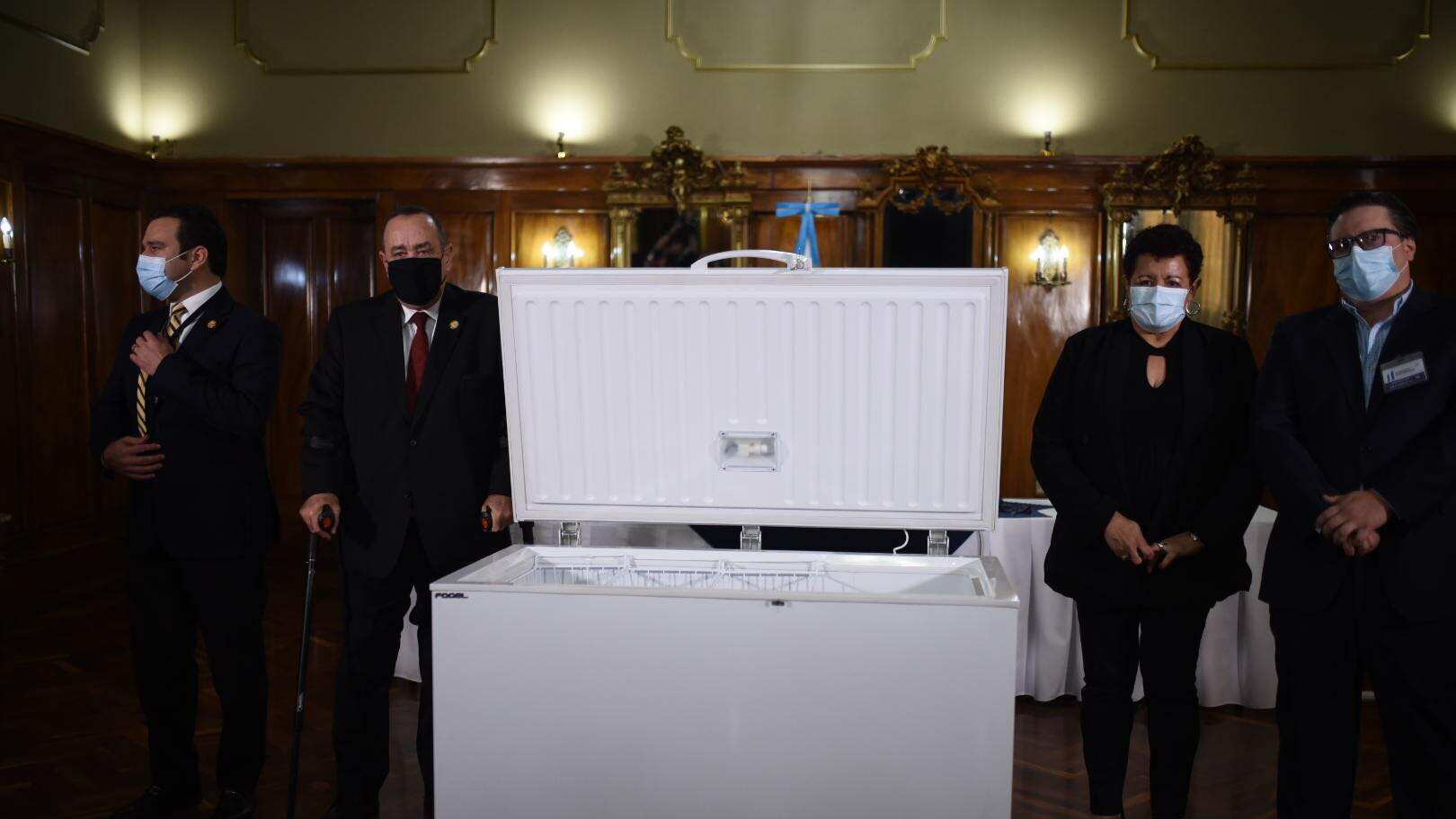 El mandatario Giammattei indicó que los congeladores soportan temperaturas de los -20 grados centígrados hasta los -23 grados centígrados, lo cual asegura que se puedan distribuir en el interior del país para tener la capacidad de tener la cadena de frío del medicamento.